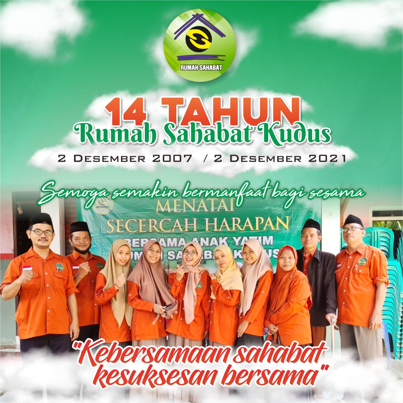 KUDUS,Suaranahdliyin.com – Memasuki akhir tahun 2021, telah menjadi momentum kebahagiaan para pengasuh Rumah Sahabat. Pasalnya, Rumah yatim yang bermarkas di desa Karangmalang RT 3 RW 1 Gebog Kudus kini memasuki u sia 14 tahun.
