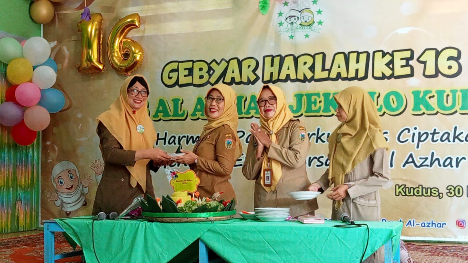 KUDUS, Suaranahdliyin.com – Tepat di perayaan Hari Lahir (Harlah)-nya ke-16, Kelompok Bermain (KB) Al-Azhar Jekulo, menyelenggarakan selametan dan tasyakuran, lengkap dengan tumpeng yang telah disiapkan.
