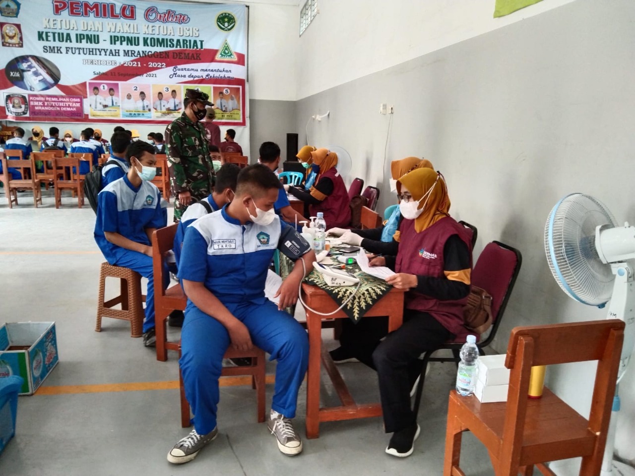 Vaksinasi tersebut dihadiri antara lain Kepala SMK Futuhiyyah H Hilmi Wafa Lc, Camat Mranggen Wiwin Edi Widodo SSos MM, serta wakil dari Koramil 12/ Mranggen (Kodim Demak) dan Bhabinkamtibmas (Polres Demak). .