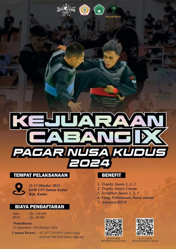 Kejurcab IX Pagar Nusa Kudus 2024 tersebut akan dilangsungkan di GOR UIN Sunan Kudus pada 11 – 13 Oktober mendatang.