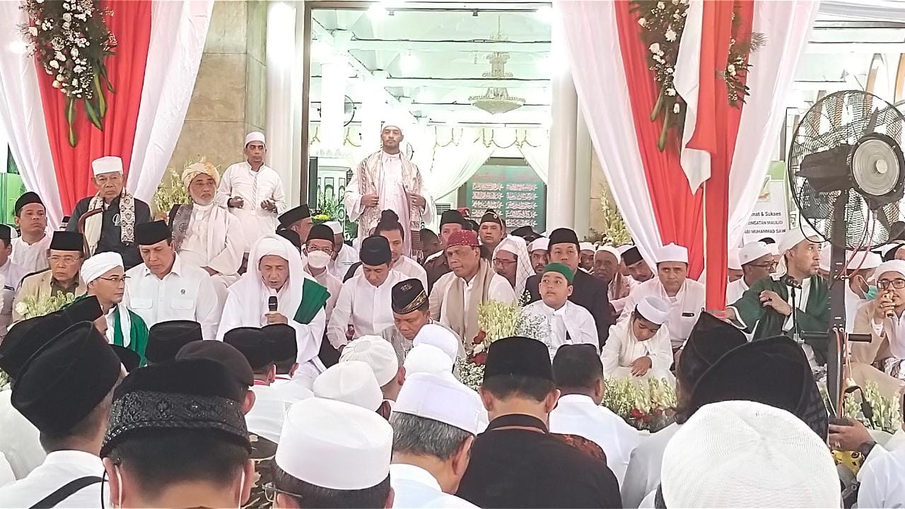 “Dahulu, 1400an tahun yang lalu, orang mudah jika ingin tahu dan kenal Nabi, cukup melangkahkan kaki saja bertemu Nabi. Tapi sekarang dengan cara maulid seperti ini lah kita bisa mengenal Nabi, dan meningkatkan mahabbah kita kepada Nabi,” papar Habib Ahmad Al-Habsyi dari Solo. (M. Farid)
