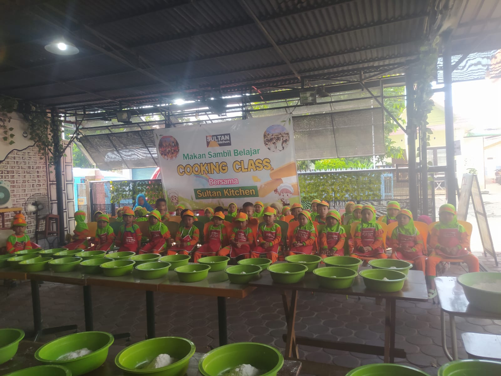 Tiba di Sultan kitchen desa Mlati Kudus, anak-anak mendapat kesempatan praktek memasak (Cooking class) ayam fried chikhen ( ayam goreng) , meninjau kolam dan permainan (game) berhadiah Mereka dipandu tim Sultan hingga pulang membawa oleh-oleh satu menu makan siang berupa nasi dan ayam chicken hasil masakan anak-anak.