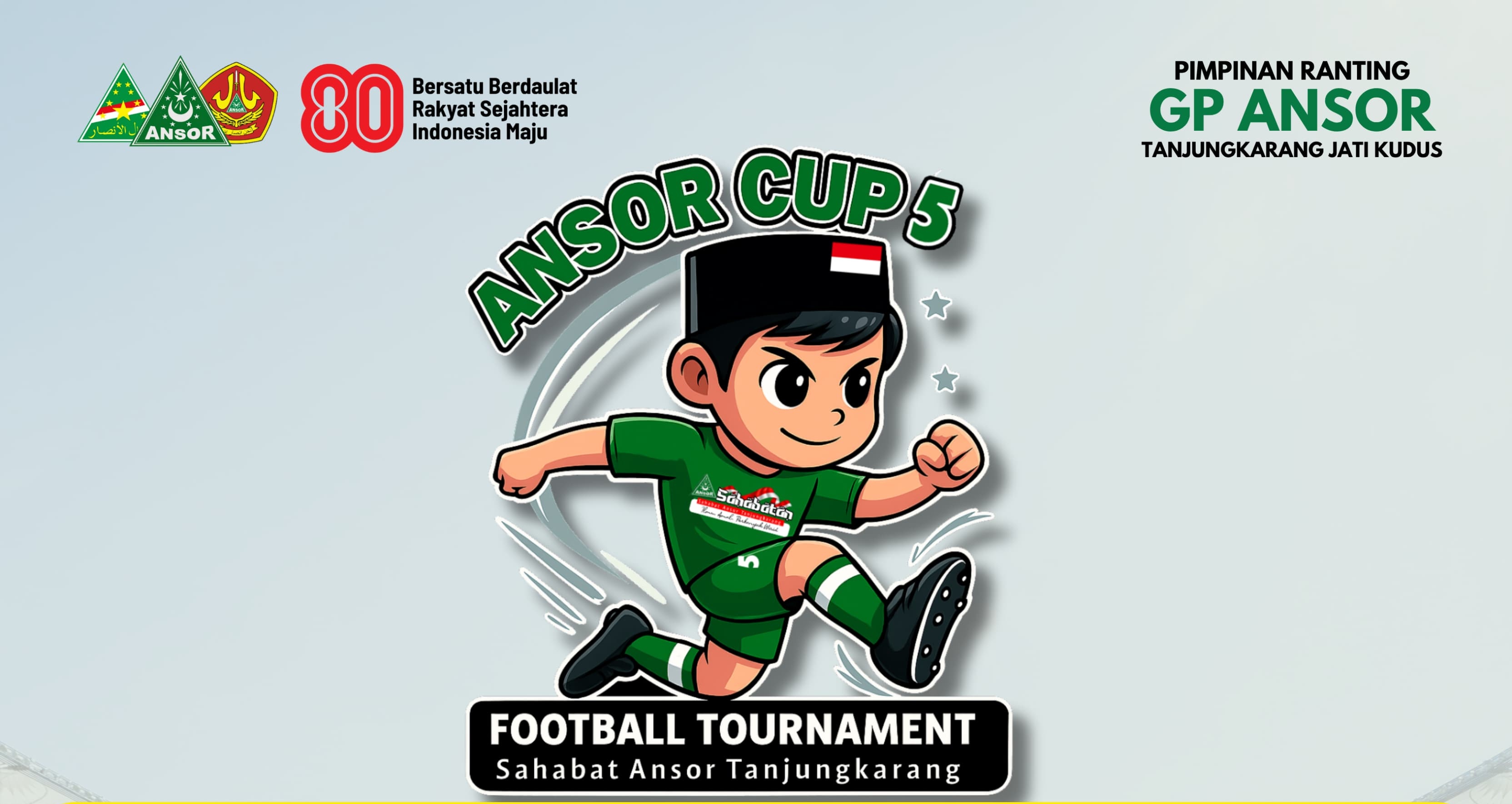KUDUS, Suaranahdliyin.com – Dalam rangka meramaikan Hari Ulang Tahun ke-80 RI, Pimpinan Ranting GP Ansor Tanjungkarang Jati Kudus akan menggelar turnamen Sepakbola antarpemuda Rukun Warga (RW). Turnamen bertajuk Ansor Cup 5 ini akan berlangsung di lapangan desa Tanjungkarang setiap Sabtu dan Ahad ,(9-10/8/2025) dan (16-17/8/2025).
