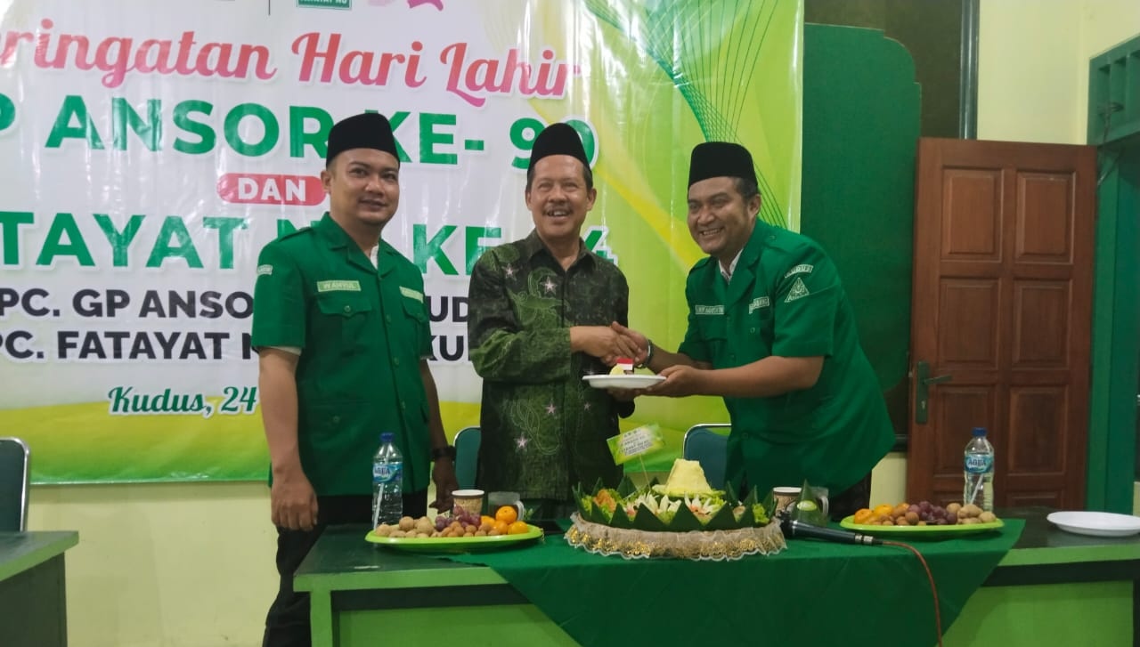 Harapan itu disampaikan ketua Pimpinan Cabang GP Ansor Kudus Arif Mustain dalam acara tasyakuran hari lahir ke-90 GP. Ansor di kantor NU setempat, Selasa malam (23/4/2024). Tasyakuran yang diadakan bersamaan merayakan harlah ke-74 Fatayat NU itu diawali pembacaan manaqib dilanjutkan pemotongan tumpeng.