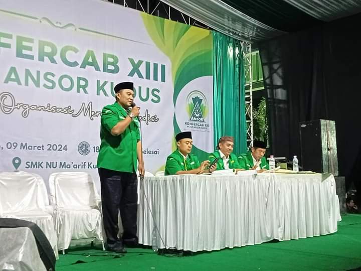 KUDUS, Suaranahdliyin.com – Konferensi Cabang (Konfercab) XIII GP. Ansor Kudus menetapkan pemimpin baru. Arif Musta’in. terpilih menjadi ketua Pimpinan Cabang GP Ansor Kudus masa khidmah 2024-2028 menggantikan Dasa Susila, ketua periode sebelumnya.