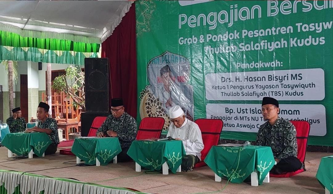 KUDUS,Suara Nahdliyin.com – Keluarga besar Madrasah Tsanawiyah Nahdlatul Ulama (MTsNU) Tasywiquth Thullab Salafiyah (TBS) Kudus mengadakan pengajian dan istighosah bersama, Ahad, (17/7/2022). Kegiatan yang diikuti seluruh siswa dan dewan guru itu menghadirkan KH. Drs. Hasan Bisri, MS. dan wakil katib PCNU Kudus K. Islakhul Umam.