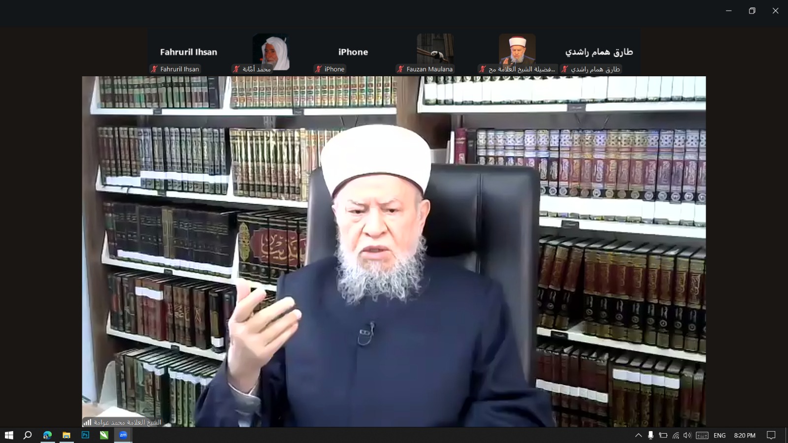 Tercatat lebih dari 180 peserta mengikuti acara melalui zoom, dan ribuan peserta lainnya hadir melalui live streaming facebook akun “فضيلة الشيخ العلامة محمد عوامة” dengan seksama hingga berakhir. (Ustaz Nurul Fattah MA, ketua Awwamah Center Indonesia/ ACI)