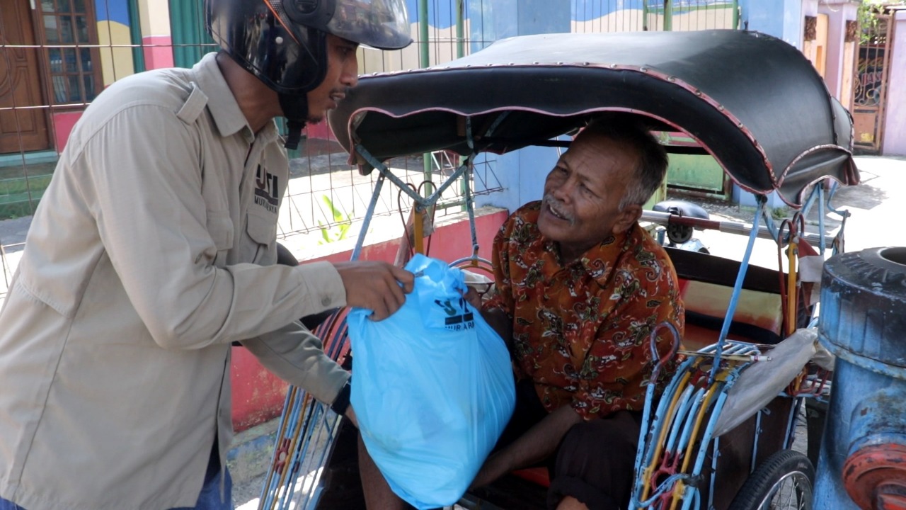 Bantuan sembako itu dibagikan kepada sejumlah tenaga kebersihan di lingkungan pendapa Kabupaten Kudus, tukang becak, juru parkir, ojek dan warga terdampak lainnya yang ditemui di beberapa titik kota kretek.