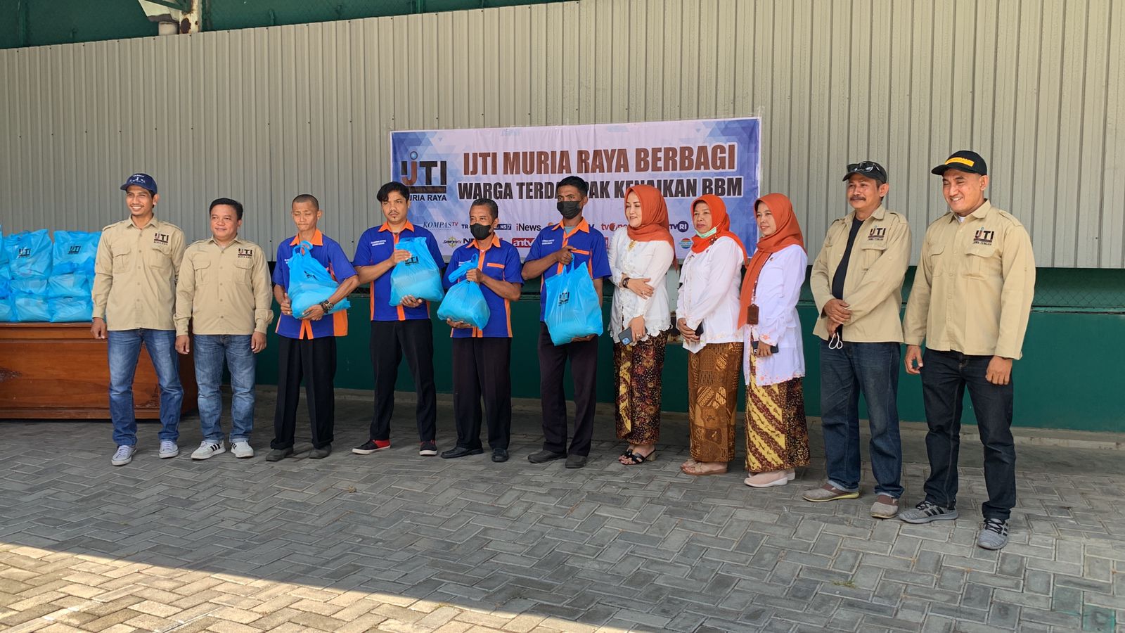 KUDUS, Suaranahdliyin.com – Ikatan Jurnalis Televisi Indonesia ( IJTI ) Korda Muria Raya mengelar membagikan sejumlah paket sembako kepada warga terdampak kenaikan harga BBM di Kudus, Jawa Tengah, Jumat (23/9/2022). Ada sebanyak 70 paket sembako yang terdiri atas 5 kilogram beras, gula dan minyak.