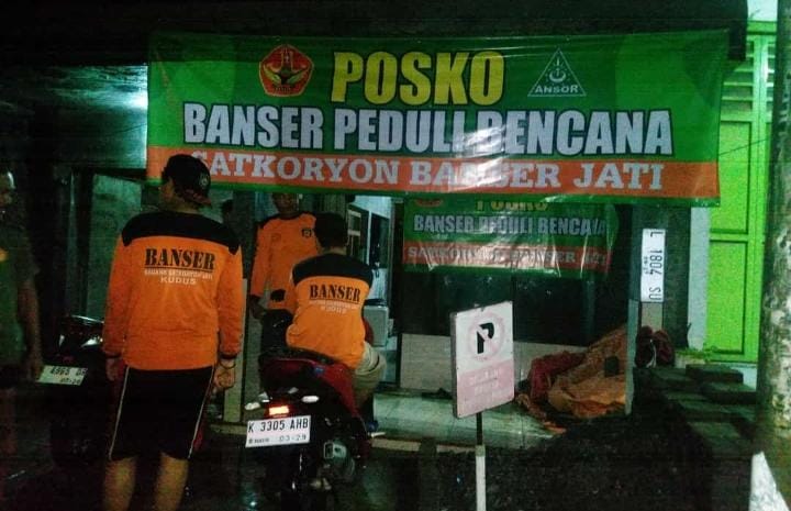 KUDUS, Suaranahdliyin.com – Akibat curah hujan yang tinggi akhir-akhir ini, sejumlah wilayah kecamatan Jati tergenang air dan kemacetan jalan. Merespon kondisi itu, Satuan Koordinasi Rayon (Satkoryon) Banser Jati mendirikan Posko Peduli Bencana di selatan lampu bangjo Tanjungkarang, Jum’at (15/03/2024).