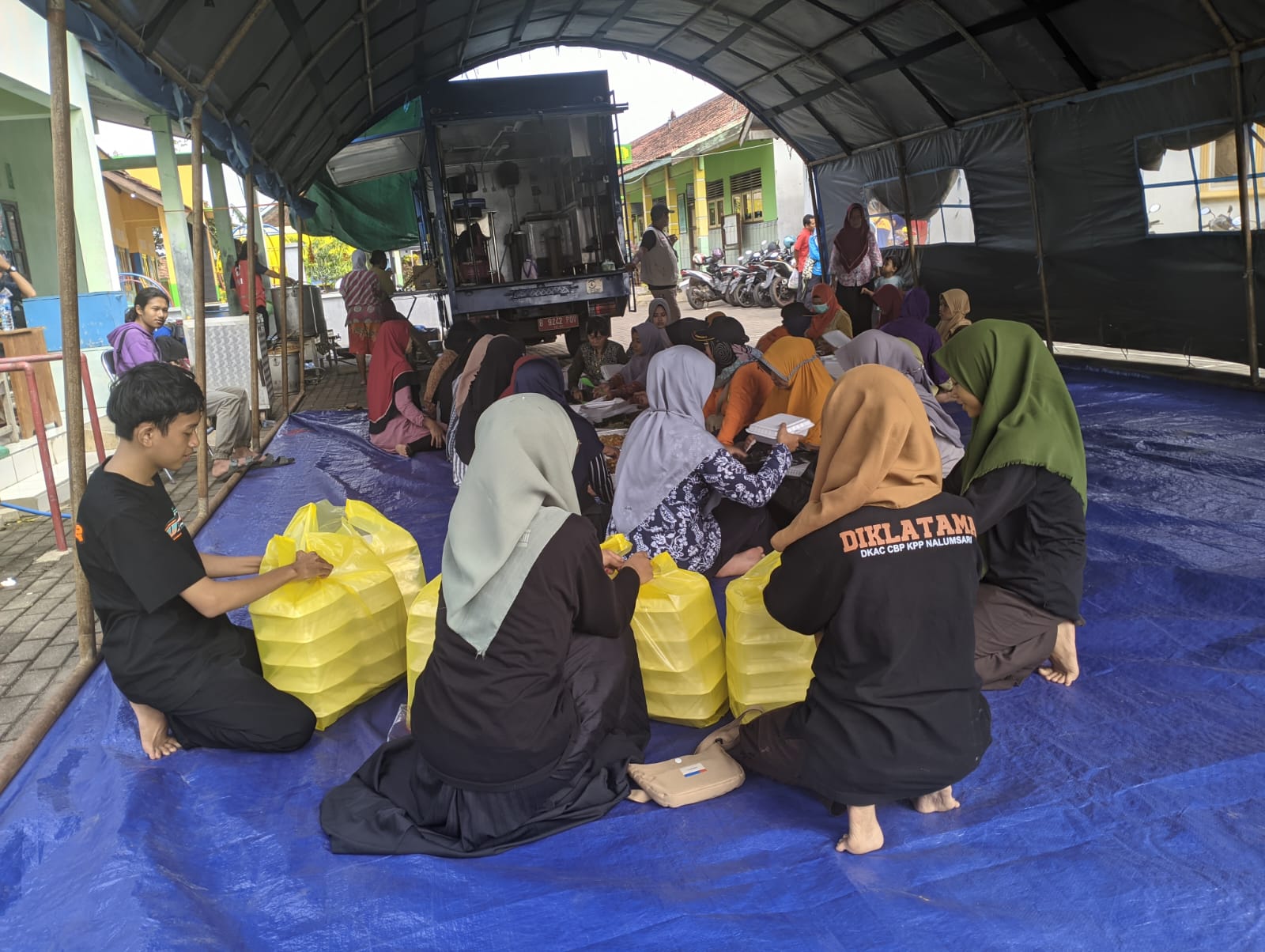 “Ada sekitar 2600-an nasi bungkus yang dibagikan untuk masyarakat yang terdampak banjir,”jelasnya