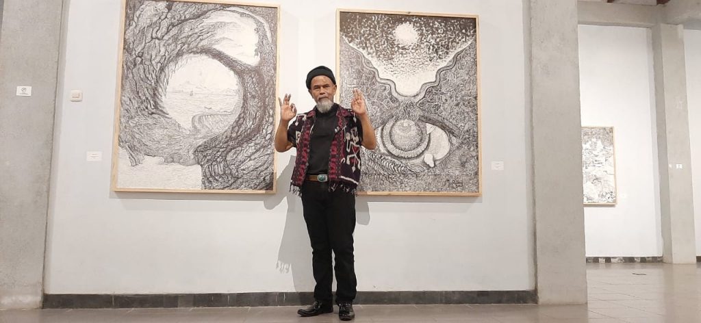 YOGYAKARTA, Suaranahdliyin.com – Dosen seni menggambar Institut Islam Nahdlatul Ulama (INISNU) Temanggung Dr. Rohmat Rizal menggelar pameran tunggal yang resmi dibuka pada Rabu (5/10/2022). Pameran lukisan tersebut adalah Pameran Tunggal Rohmat Rizal “Dari Titik Jalan 113” di Museum dan Tanah Liat (MDTL) Jalan Menayu, Desa Kersan No.RT.05, Jeblog, Tirtonirmolo, Kec. Kasihan, Kabupaten Bantul, Daerah Istimewa Yogyakarta.