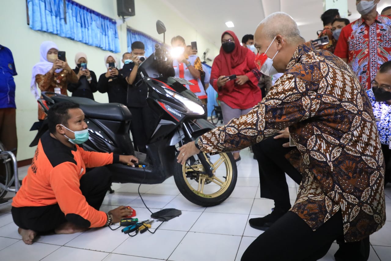 Ganjar mengutarakan hal itu usai membuka Pelatihan Mekanik Sepeda Motor bagi penyandang disabilitas di SMKN Jawa Tengah, Rabu (9/3/2022). Pelatihan yang diselenggarakan Baznas Jateng ini merupakan pelatihan kedua dan diikuti sebanyak 60 penyandang disabilitas se Jateng.