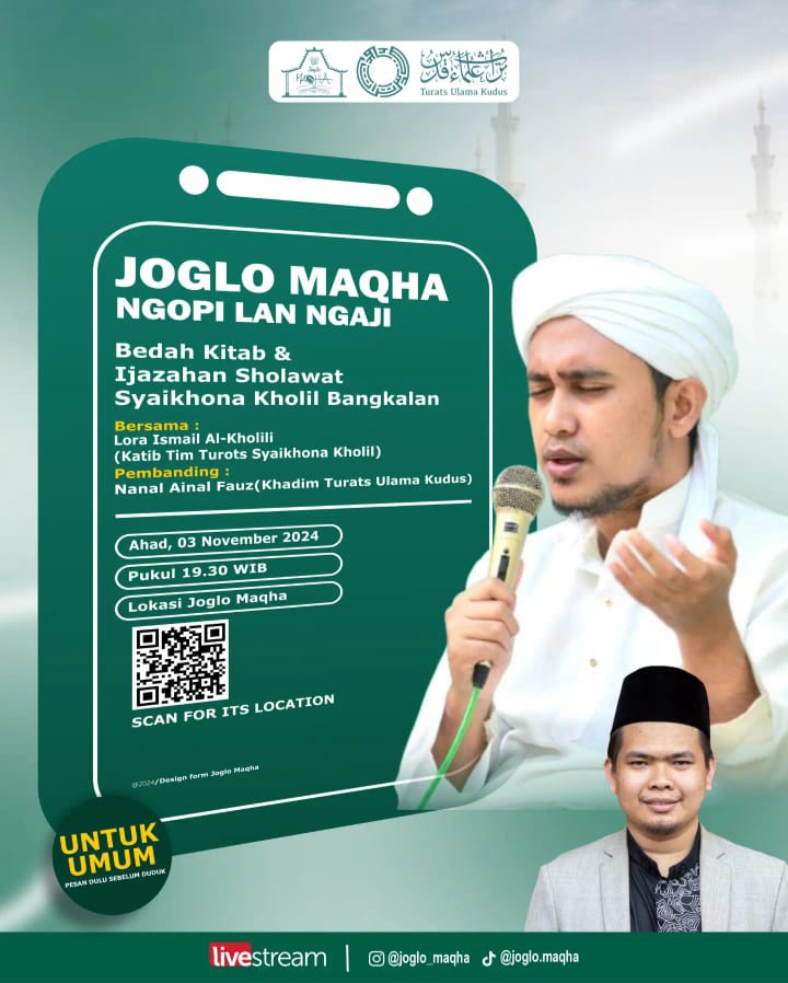 KUDUS, Jalapantura.com – Bertempat di Joglo Maqha akan dilakukan “Ngopi lan Ngaji” dengan membedah kitab dan ijazahan sholawat Syaikhina M Kholil Bangkalan.