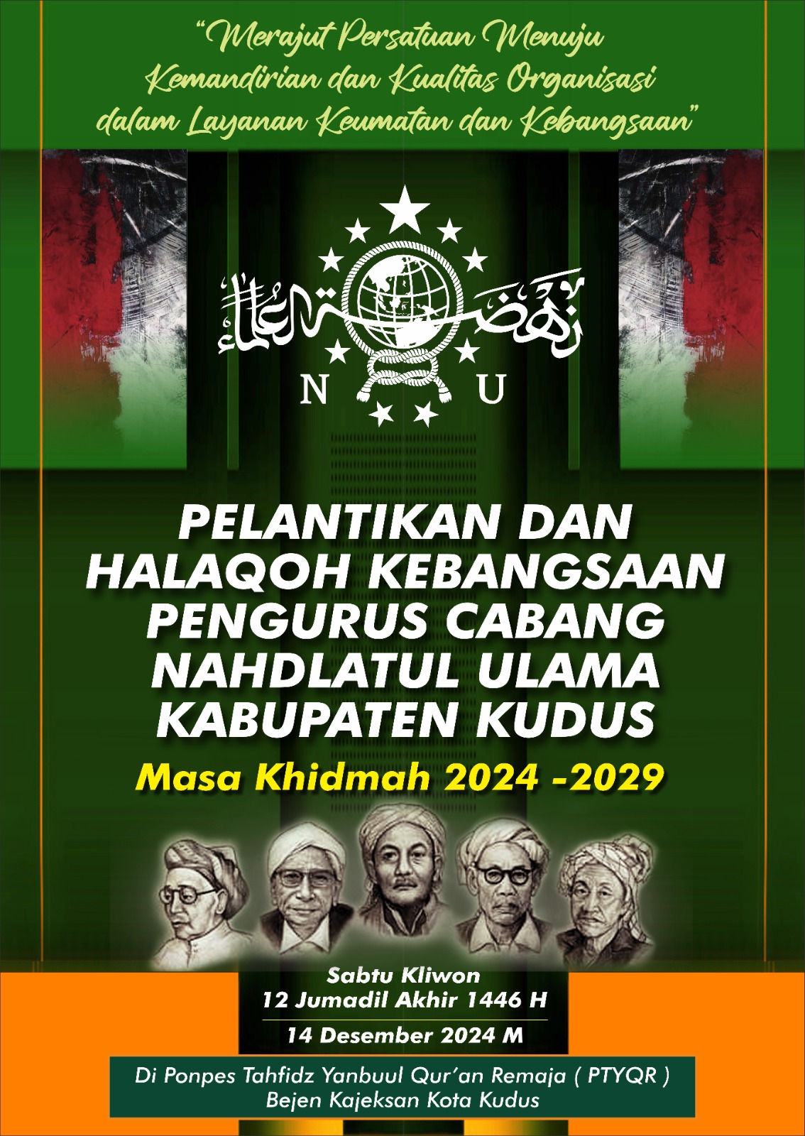 Menurut Dr H Nur Said SAg MAg MA, pelantikan jajaran kepengurusan PCNU Kabupaten Kudus Masa Khidmah 2024 – 2029 akan dilangsungkan pada Sabtu, 12 Jumadal Akhirah 1446 H/ 14 Desember 2024 M di Pondok Pesantren (Ponpes) Tahfudh Yanbu’ul Quran Remaja (PTYQR), Bejen, Kajeksan, Kota, Kudus.