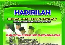 KUDUS, Suaranahdliyin.com - Bertempat di halaman Masjid Asy-Syarif 1 Desa Padurenan, Kecamatan Gebog, Kudus akan diselenggarakan Gebyar Maulidan Jawiyan, Rabu (29/11/2017). Dalam kesempatan ini,...