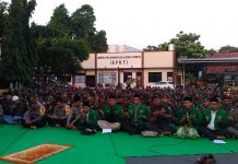 Ratusan Anggota Ansor Banser tengah doa bersama usai tahlilan di halaman Polres Kudus,beberapa waktu lalu (foto ilustrasi/adb)