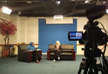 Aang saat latihan praktek talk show pada acara pelatihan media creative