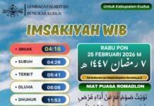 KUDUS, Suaranahdliyin.com - Jadwal Imsakiyah untuk Wilayah Kudus, 7 Ramadan 1447 H/ 25 Februari 2026.