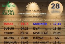 Jadwal Imsakiyah untuk Wilayah Kudus, 28 Ramadan 1445 H