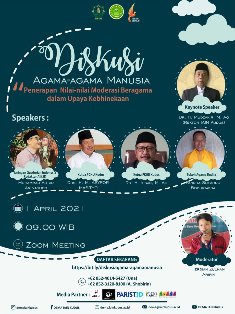 Diskusi yang akan dilangsungkan pada Kamis (1/4/2021) mulai pukul 09.00 WIB melalui zoom meeting, itu mendapuk Dr H Mudzakir MAg (Rektor IAIN Kudus) sebagai keynote speaker.