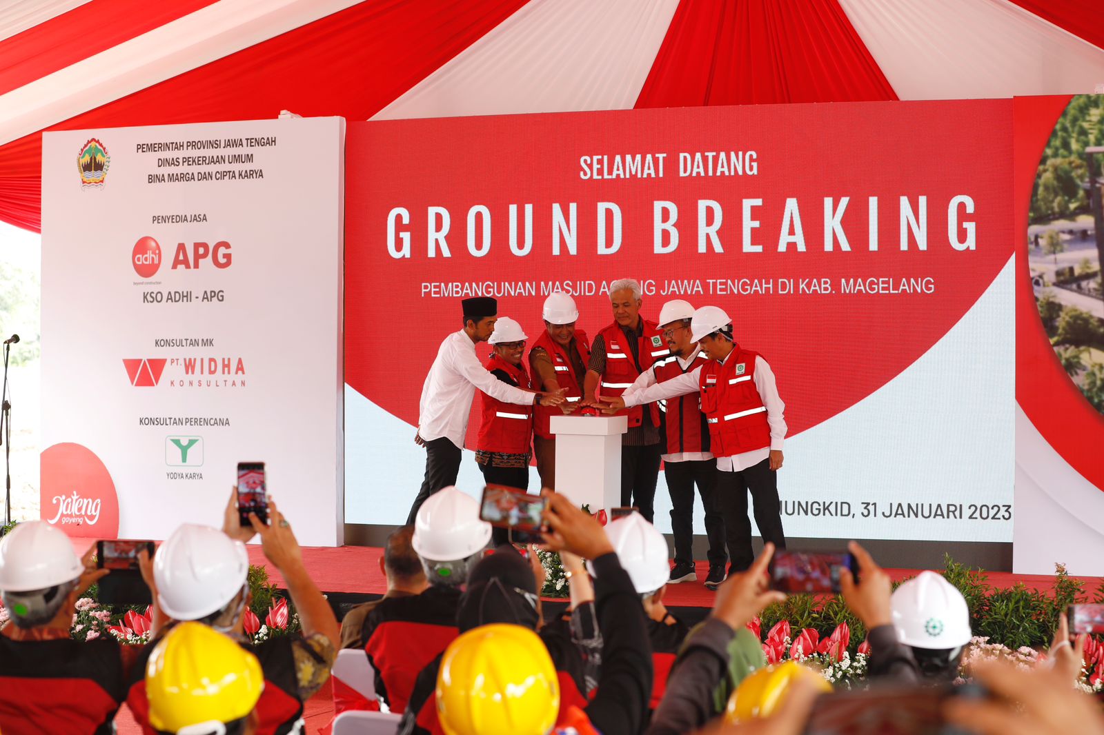 MAGELANG, Suaranahdliyin.com – Gubernur Jawa Tengah Ganjar Pranowo melakukan ground breaking pembangunan Masjid Agung Jawa Tengah (MAJT) di Kabupaten Magelang, Selasa (31/1/2023) lalu. Pembangunan ditargetkan rampung akhir tahun. Masjid itu tidak hanya megah, namun juga mengambil unsur tradisional agar selaras dengan pengembangan wisata Borobudur.