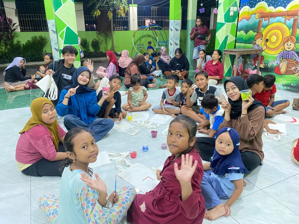 “Setelah itu kita memberikan anak-anak sebuah totebag beserta alat untuk menggambar, ekspresi dari anak-anak dituangkan kedalam lukisan yang dibuat di totebag yang sudah disediakan. Totebag lukisan menjadi media utama bagi anak-anak mengekspresikan perasaan mereka,” tambahnya.
