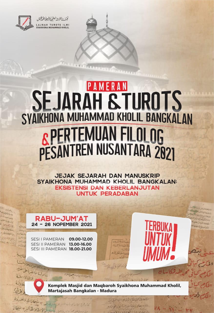 Pameran dan Pertemuan Filolog Pesantren Nusantara 2021 yang mengusung tema “Jejak Sejarah dan Manuskrip Syaikhona Muhammad Kholil Bangkalan: Eksistensi dan Keberlanjutan untuk Peradaban”, ini digelar di kompleks Masjid dan Maqbaroh Syaikhona Muhammad Kholil, 24 – 26 November 2021.