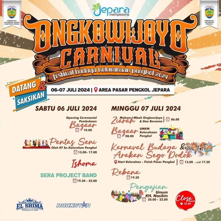 JEPARA, Suaranahdliyin.om – Bertempat di area Pasar Pengkol Jepara, akan dilangsungkan Festival Budaya Kelurahan Pengkol 2024 bertajuk “Ongkowijoyo Carnical”.