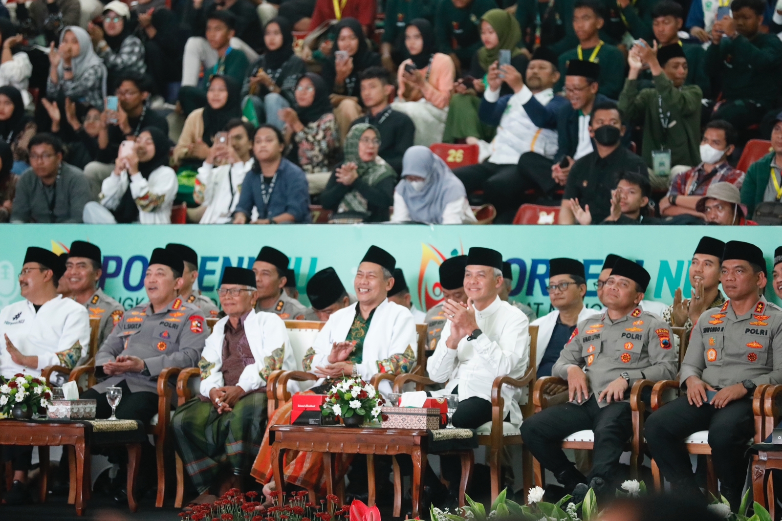 SURAKARTA, Suaranahdliyin.com – Riuh tepuk tangan menggema di GOR Sritex Arena Kota Surakarta, saat Gubernur Jawa Tengah, Ganjar Pranowo, naik podium pada penutupan Pekan Olahraga dan Seni (Porseni) Nahdlatul Ulama (NU) 2023, Sabtu (21/1/2023). Ganjar memberikan sambutan, sekaligus melepas kepulangan kontingen dari berbagai provinsi di Indonesia.