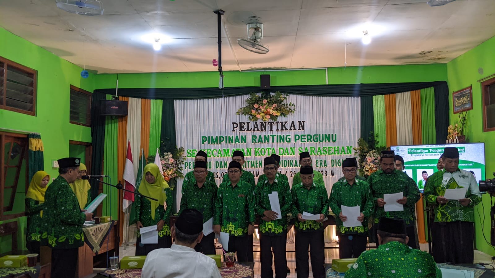 Pelantikan berlangsung di Gedung lantai 2 SMP NU Putri Nawa Kartika Desa Langgardalem Kudus. Masing-masing perwakilan ketua PR Pergunu mengikuti baiat di depan semua peserta yang hadir.