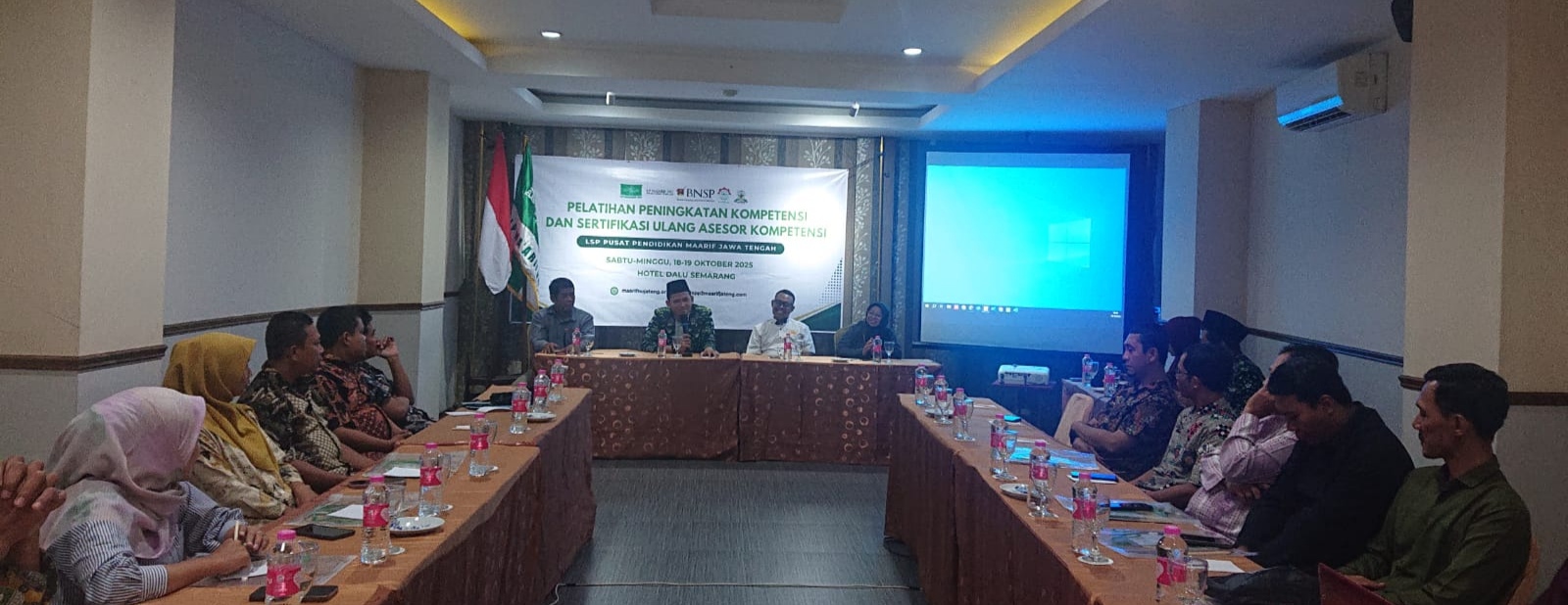 SEMARANG,Suaranahdliyin.com — Lembaga Sertifikasi Profesi Pihak Kedua (LSP P2) Ma’arif Jawa Tengah menggelar Pelatihan Peningkatan Kompetensi dan Sertifikasi Ulang Asesor Kompetensi, Sabtu – Ahad (18–19/10/2025(. Agenda ini menjadi langkah penting untuk memastikan para asesor tetap selaras dengan dinamika dunia kerja dan pendidikan vokasi.