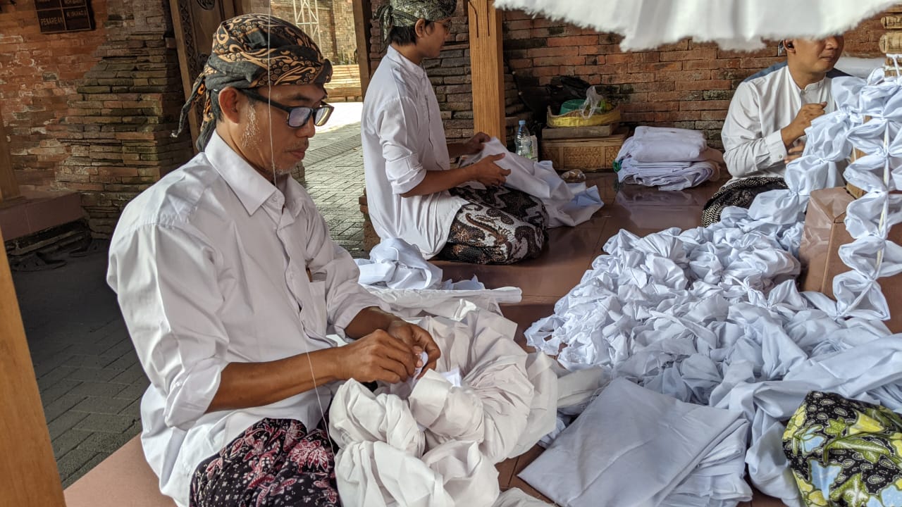 “Untuk ngalap berkah, kami jaga kesucian kain dengan berwudhu dulu,” tambahnya.