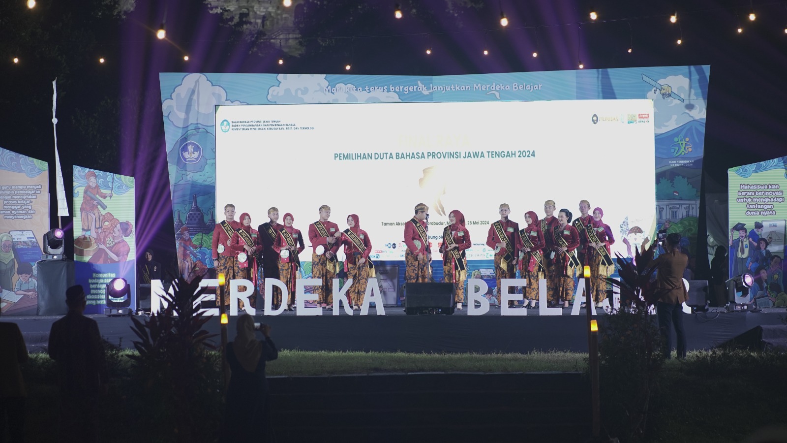 MAGELANG, Suaranahdliyin.com – Balai Bahasa Provinsi Jawa Tengah sukses menggelar Final Raya Pemilihan Duta Bahasa Provinsi Jawa Tengah Tahun 2024 di Taman Aksobya Candi Borobudur, Magelang, Jumat-Ahad, (24-26/05/2024). Kegiatan tersebut terselenggara bersaman dengan pelaksanaan Pameran dan Festival Kurikulum Merdeka dalam rangka Bulan Merdeka Belajar dan Hari Pendidikan Nasional.
