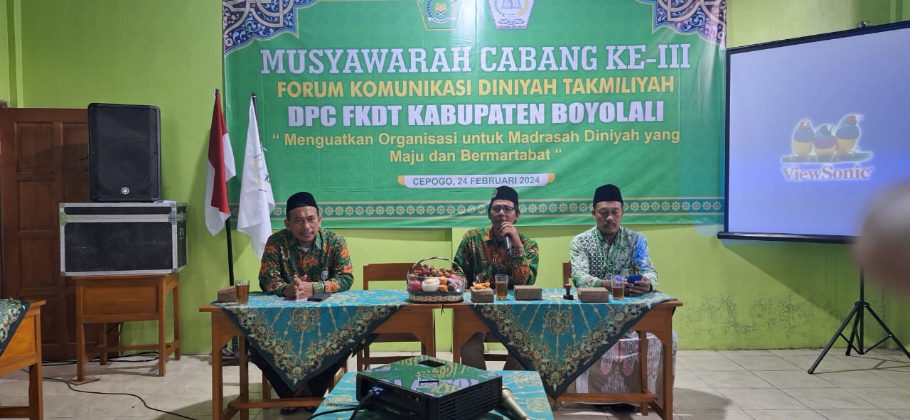 Demikian pesan Ketua Dewan Pengurus Wilayah (DPW) FKDT Jawa Tengah Kiai Abdul Rohman yang disampaikan Wakil Ketua Akhmad Sururi saat memberikan sambutan penutupan Musyawarah Cabang (Muscab) DPC FKDT Boyolali, Ahad (24/2/2024).