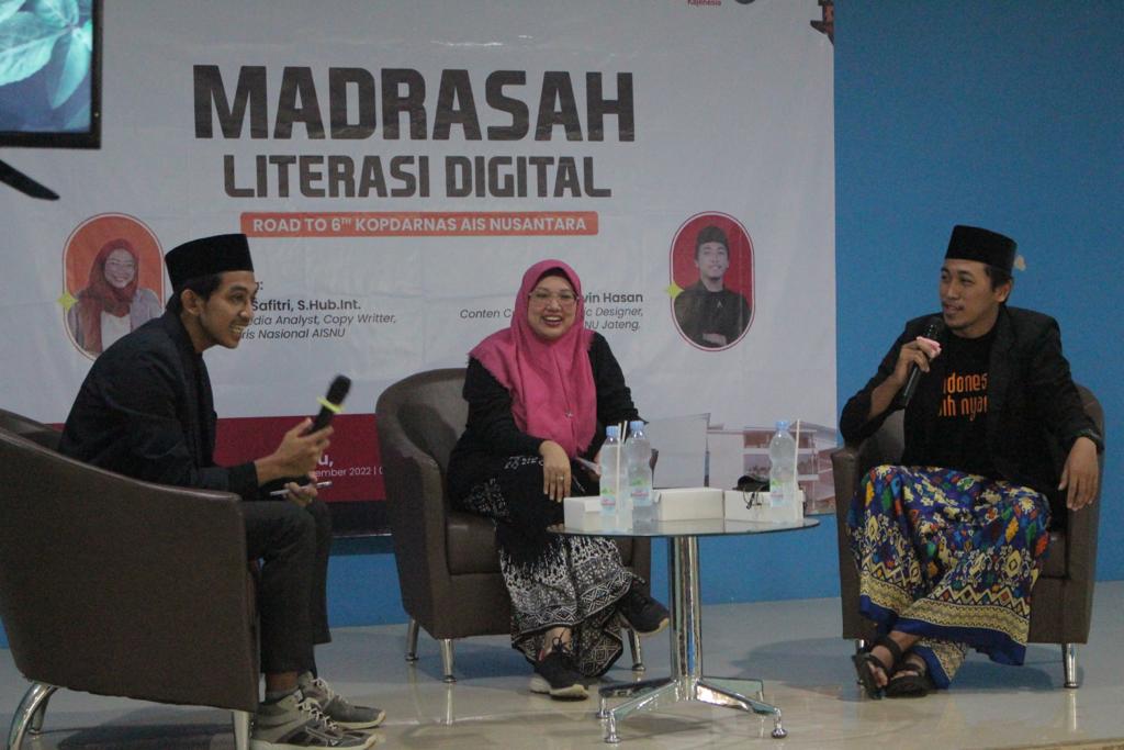 Madrasah Literasi Digital yang diikuti 110 prang ini menghadirkan nara sumber sekretaris Nasional AISNU Nafilah S.Hub.Int dan Diqqi Alvin Hasan (Wakil Koordinator AISNU Jawa Tengah).
