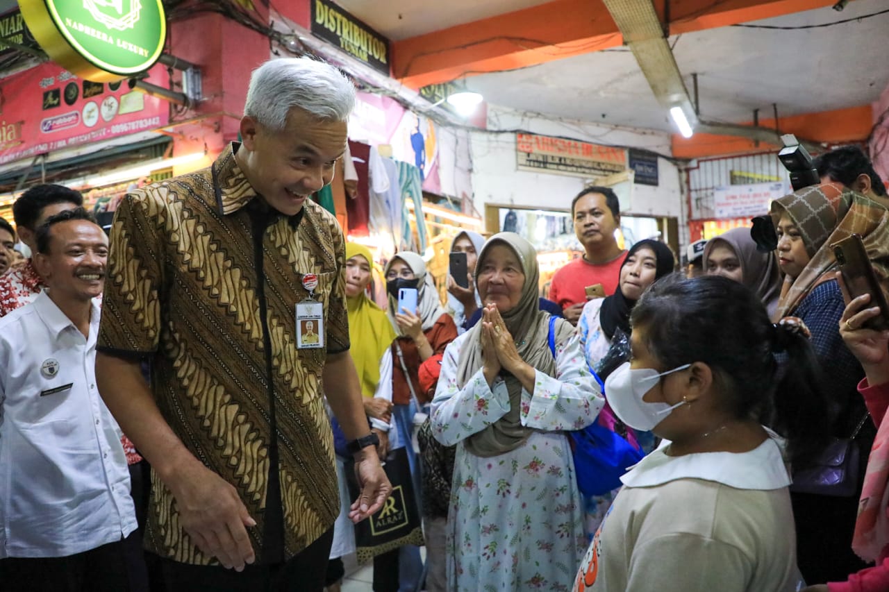 Dalam kunjungannya, Ganjar menyempatkan berdialog dengan pedagang di pasar dan juga pembeli. Setelah berkeliling di sekitar pedagang pakaian, ia kemudian naik ke lantai dua untuk mengecek harga bahan pokok. (rls/ ros, rid, adb)