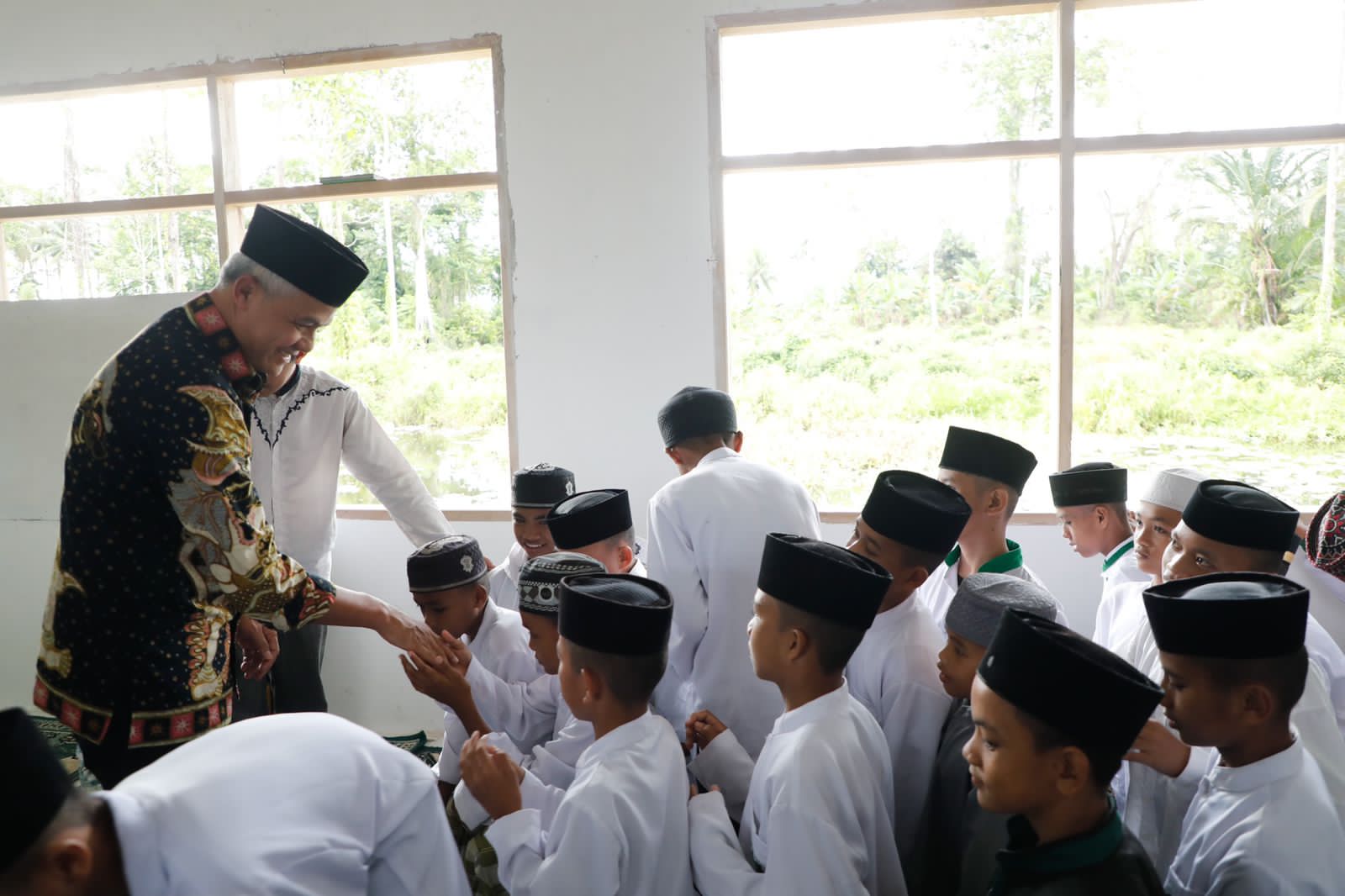 Dalam kesempatan itu, Ganjar diminta memberikan pesan dan motivasi pada ratusan santri dan santriwati. Meski santai, namun suasana penuh khidmat tersaji dalam pertemuan itu.