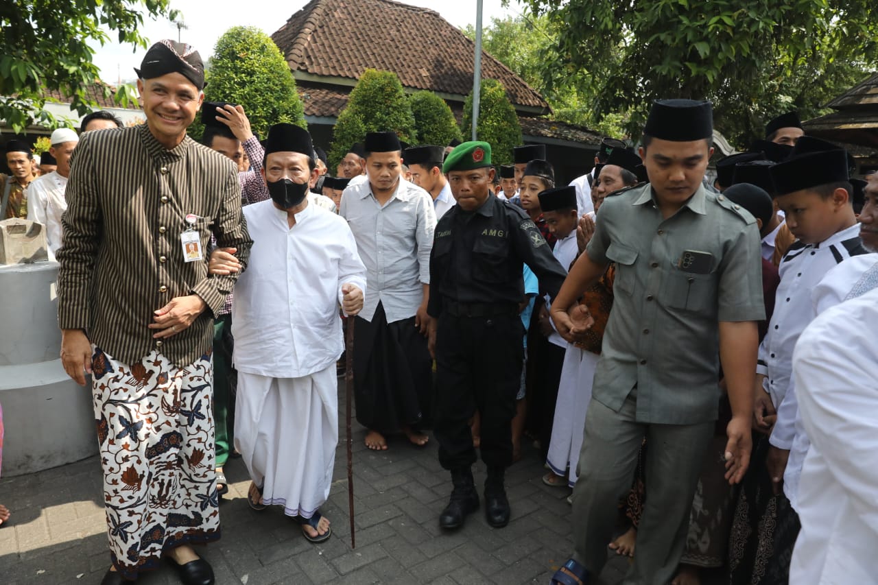 Melihat kedatangan Ganjar, para santri dan pelajar pun langsung berebut salaman dengan Ganjar. Setelah menyapa para jemaah dan santri, Ganjar kemudian langsung menuju ke kediaman Kiai Munif.