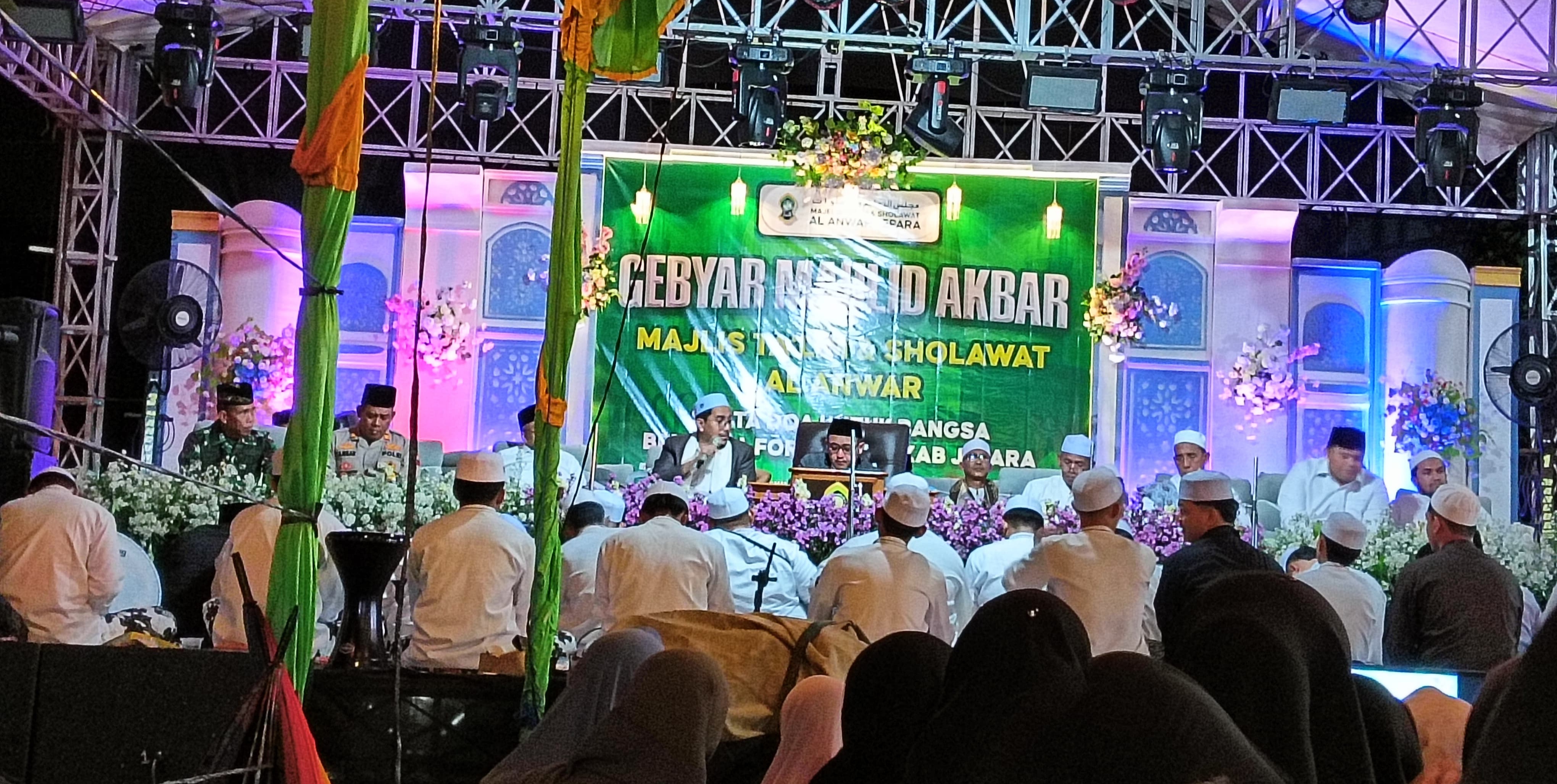 JEPARA,Suaranahdliyian.com – Majelis Ta’lim dan Shalawat Al Anwar Jepara mengadakan Gebyar Maulid Akbar di desa Suwawal, Kecamatan Mlonggo, Kabupaten Jepara, Ahad malam (14/12/2025). Kegiatan ini menjadi momentum peringatan Maulid Nabi Muhammad SAW sekaligus doa bersama untuk bangsa bersama Forkopimda Kabupaten Jepara.
