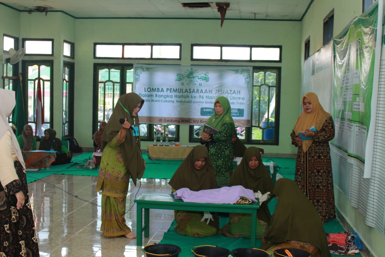 TEBO,Suaranahdliyin.om – Dalam rangka memeringati harlah ke- 96 NU, Pengurus Majlis Wakil Cabang Nahdlatul Ulama (MWCNU) Kecamatan Rimbo Bujang, Kabupaten Tebo, Jambi mengadakan lomba pemulasaran jenazah pada Sabtu-Ahad (29-30/1/2022). Kegiatan yang bertempat di Gedung MWCNU setempat itu, diikuti peserta anggota Fatayat – Muslimat NU utusan ranting se-Rimbo Bujang.