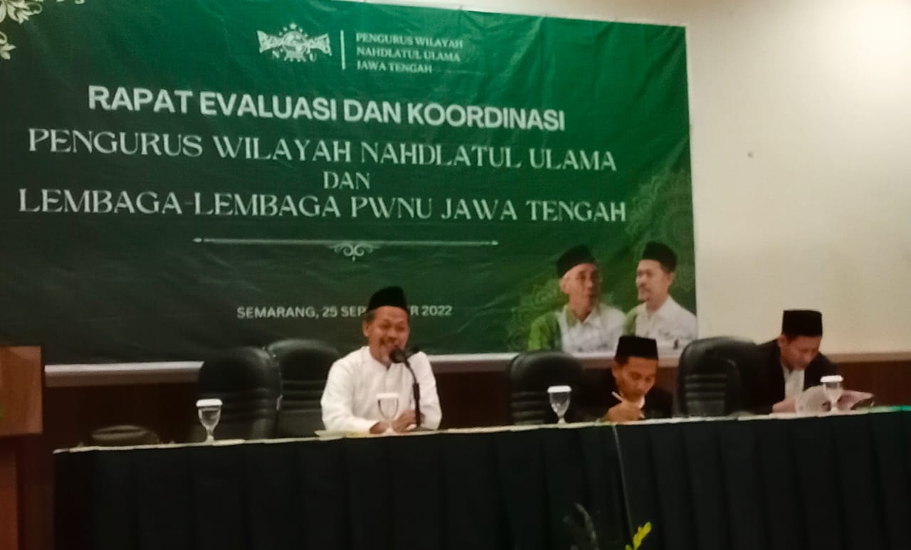 Kegiatan Rapat evaluasi dan koordinasi yang berlangsung tiap semesteran ini dihadiri oleh Rais Syuriyah PWNU KH. Ubaidullah Shodaqoh dan para pengurus lainnya beserta seluruh ketua dan sekretaris lembaga di lingkungan PWNU Jawa Tengah (Mahlail Syakur/adb