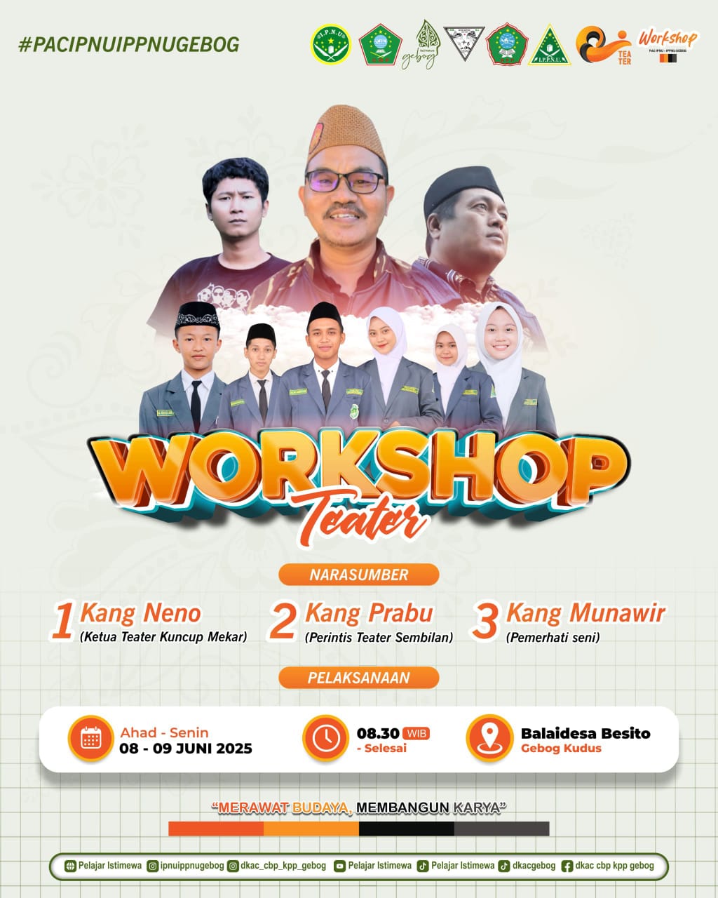 M Khasanul Muna, ketua PAC IPNU Gebog mengutarakan, workshop ini digelar untuk mengembangkan minat dan bakat seni generasi muda, khususnya di bidang seni peran dan lebih khusus lagi teater.