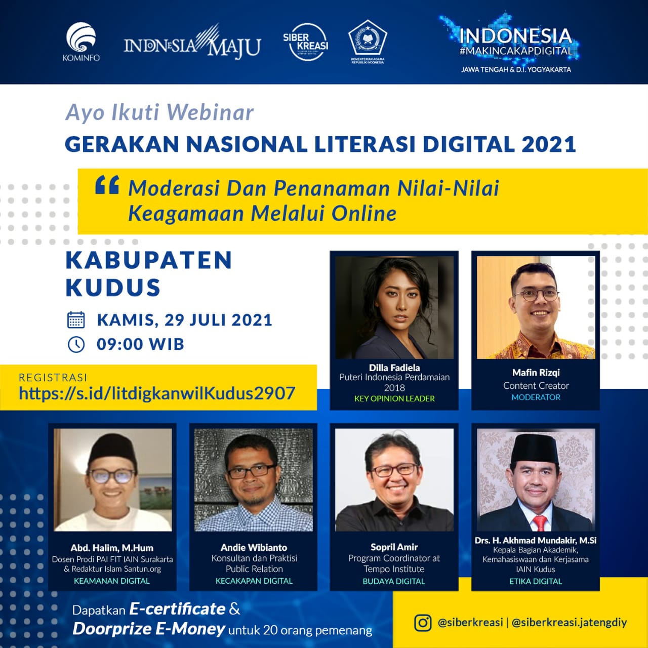 KUDUS, Suaranahdliyin.com – Pada Kamis (29/7/2021) besok, mulai pukul 09.00 hingga 11.30 WIB melalui Zoom Meeting, kembali akan dilangsungkan webinar Gerakan Nasional Literasi Digital (GNLD) bagi pendidik di Kabupaten Kudus.