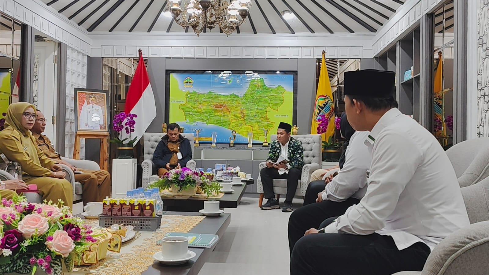 Ketua LP Ma’arif NU Jawa Tengah, Fakhruddin Karmani, hadir bersama jajaran pengurus wilayah, antara lain Wakil Ketua Hidayatun, bendahara Muhamad Muzammil, Sekretaris Ahsanul Husna, serta jajaran panitia PORSEMA XIII. Pertemuan tersebut membahas secara khusus progres persiapan PORSEMA XIII yang akan digelar pada 10–13 September 2025 di Kabupaten Wonosobo, sekaligus mengundang langsung Gubernur untuk hadir membuka acara tersebut.