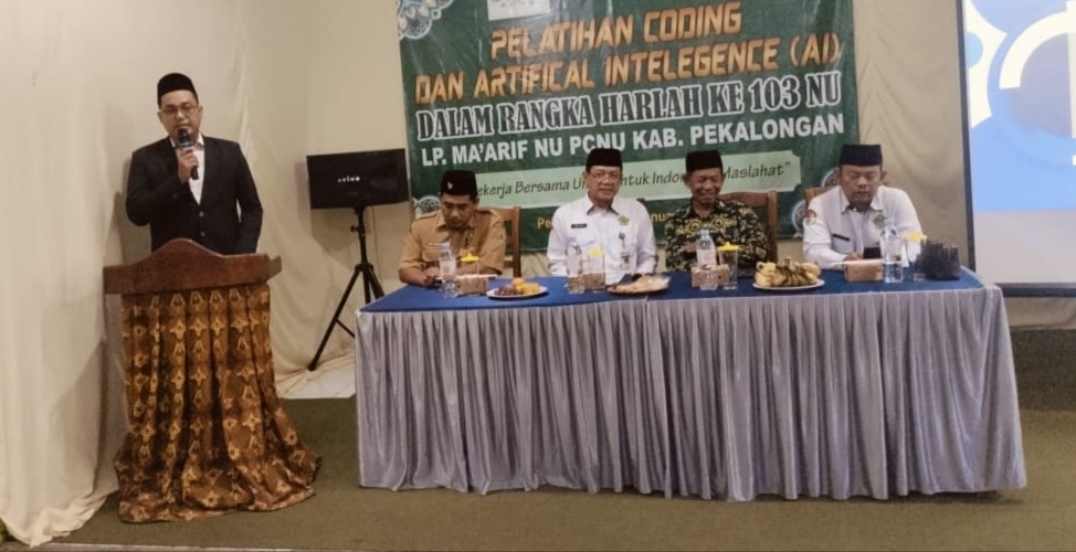 Ketua LP Ma’arif NU Kabupaten Pekalongan, Drs. H. Daenuri, M.Pd.I.,menyampaikan hal itu dalam pembukaan Pelatihan Coding dan Artificial Intelligence (AI) di Rumah Makan Kulu Asri, Karanganyar, Kabupaten Pekalongan, Pelatihan yang diselenggarakan Lembaga Pendidikan (LP) Ma’arif NU Kabupaten Pekalongan Bidang Madrasah Ibtidaiyah (MI) ini diikuti oleh 105 guru MI di bawah naungan LP Ma’arif NU setempat.