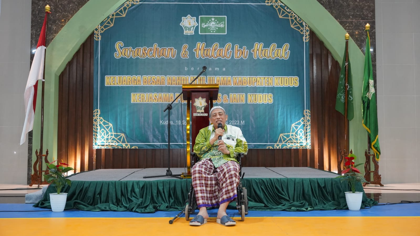 Sementara itu, Rektor IAIN Kudus Prof. Dr. H. Abdurrahman Kasdi, LC., M.Si. menyambut dengan rasa bangga dan bahagia. Sebab, IAIN Kudus dapat menjadi bagian serta turut andil menjadi tuan rumah dalam acara Halal Bihalal PCNU Kabupaten kudus.