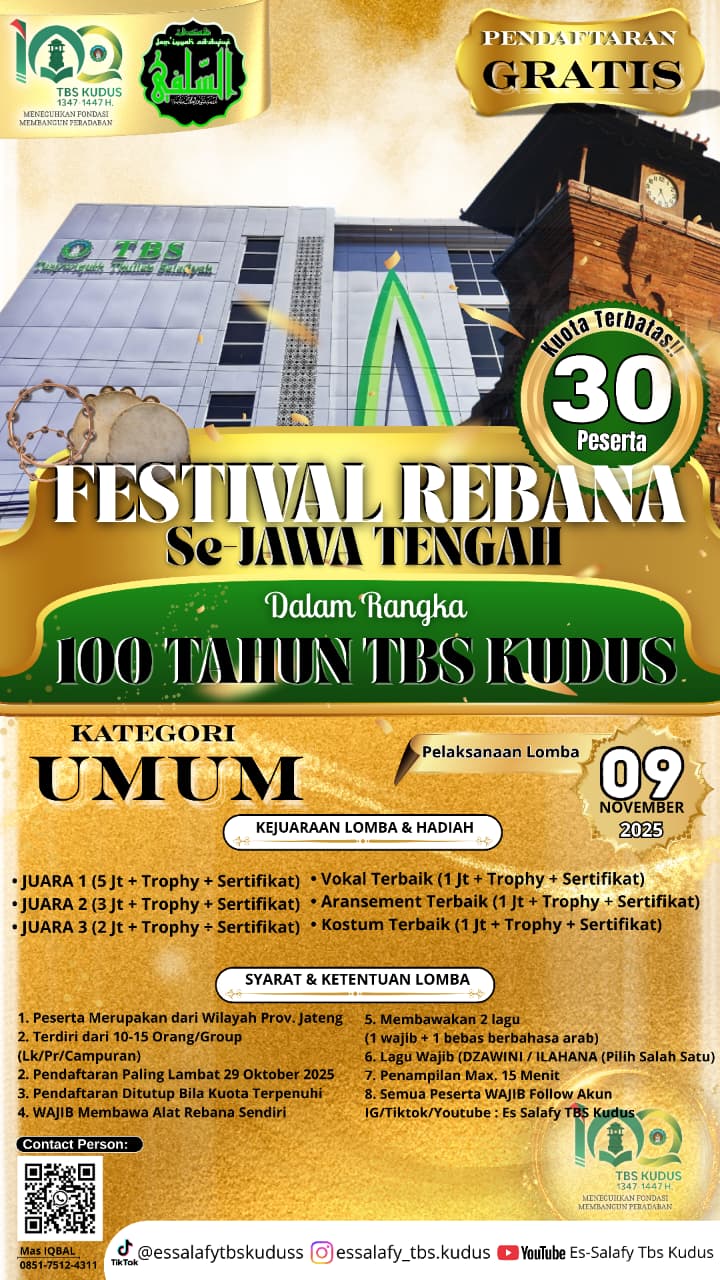 Festival rebana ini akan dilangsungkan pada pekan kedua November mendatang. Dan pendaftaran akan ditutup pada 29 Oktober 2025.