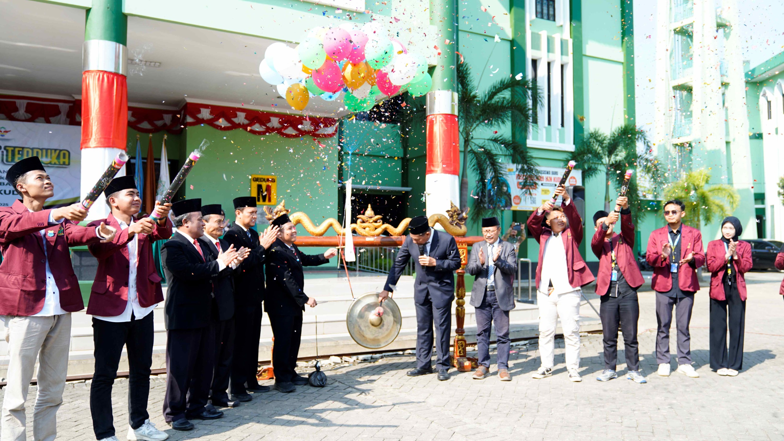 Pembukaan PBAK ditandai dengan pemukulan gong oleh Rektor, pelepasan balon oleh Wakil Rektor III, dan penyematan tanda peserta kepada perwakilan mahasiswa baru tahun 2025.(rls/adb)