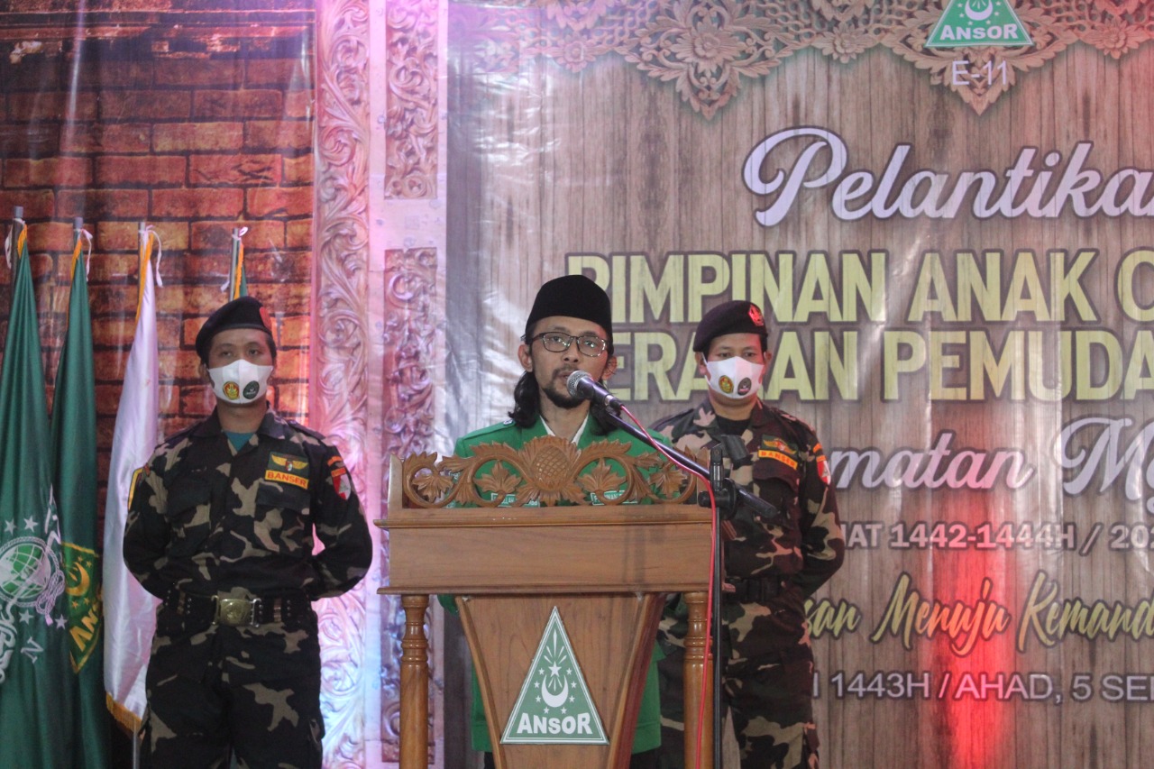 Gus Aun dalam orasinya, menyampaikan, agar para kader GP Ansor tidak menjadi kader mutungan. “Jangan mutungan, menjadi pemuda harus berkobar-kobar,” pesannya.